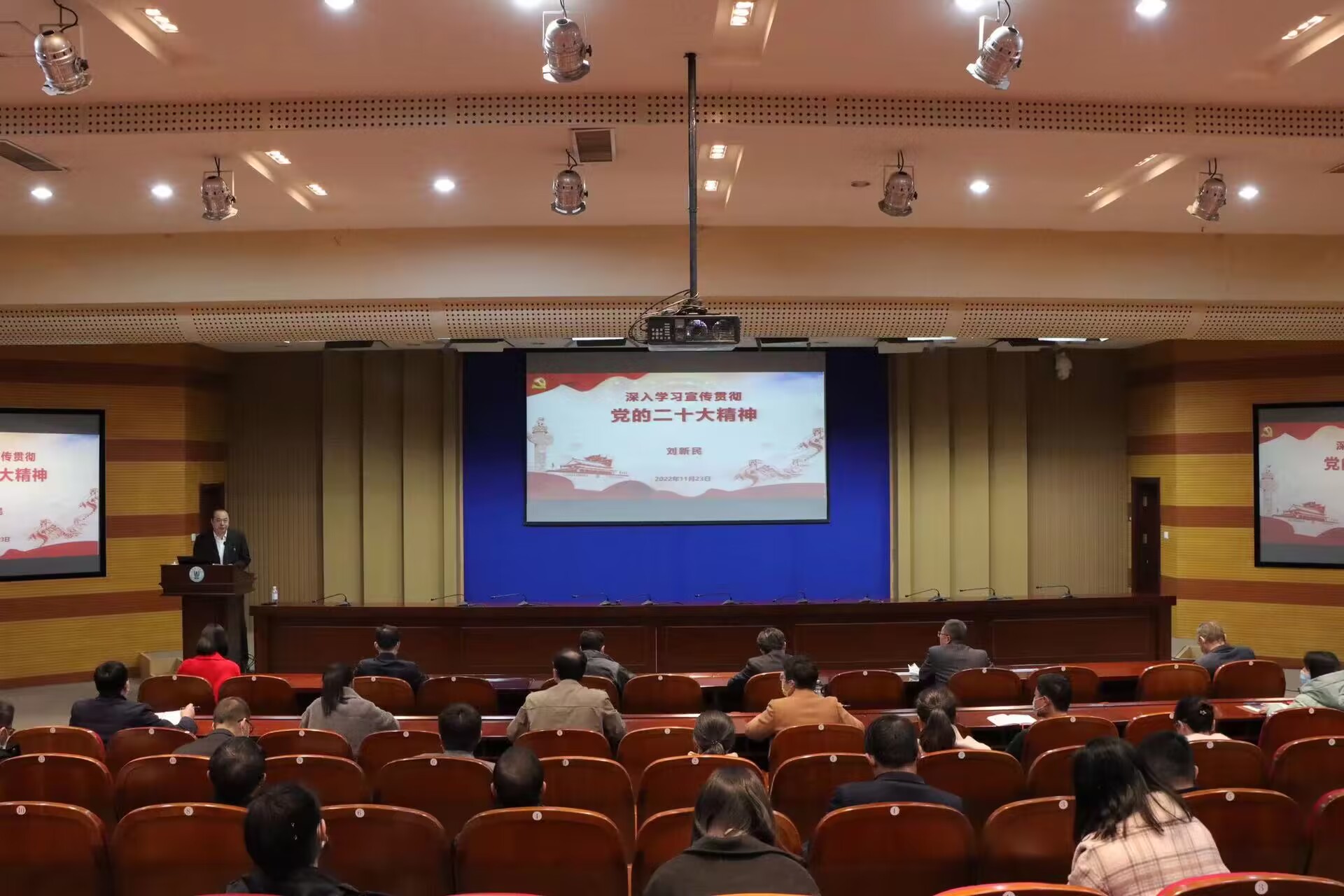 11月23日下午,万象城allwincity官网党委副书记、校长刘新民在学术会馆第一报告厅宣讲党的二十大精神,分管单位党员代表,联系的党支部、学生班级及思政课教师参加。