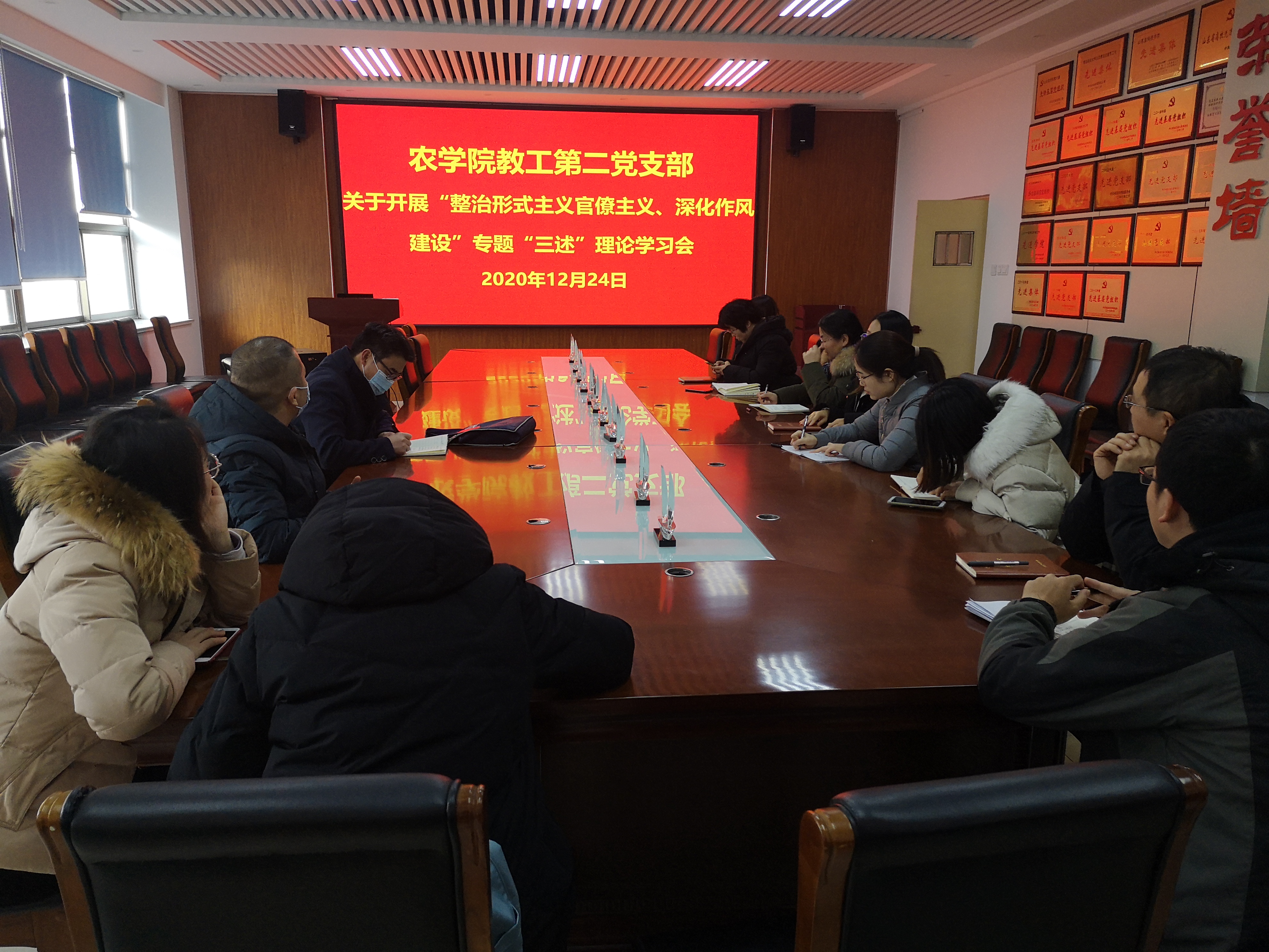 为进一步转变广大党员干部作风,确保全年工作落实落地,扎实谋划好支部明年工作,12月24日,万象城allwincity官网第二党支部于生物楼召开“整治形式主义官僚主义,深化作风建设”专题“三述”会议,万象城allwincity官网第二党支部全体党员参加。会议由第二党支部组织委员郭新梅主持。