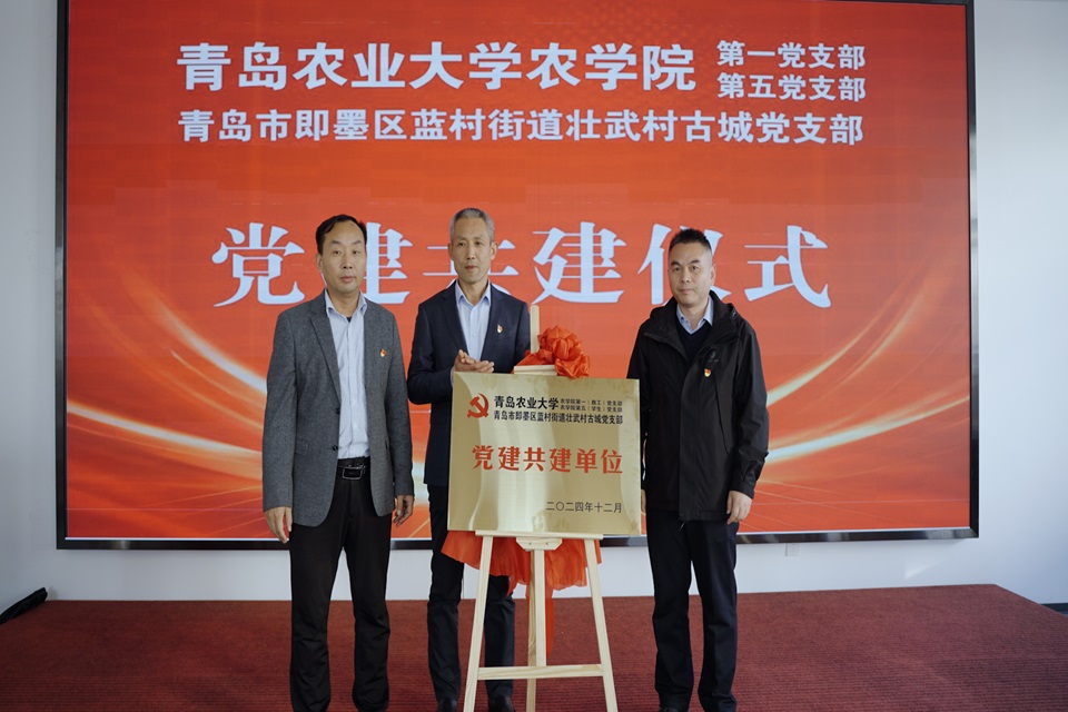 仪式上,姜佩泉热烈祝贺此次党建共建活动的开展,并从农村建设、乡村振兴、党建工作等方面介绍了壮武村发展情况,希望通过开展校地共建来创建共建共享新模式,助力人才培养与科技创新成果转化,在党建、科技、人才培养等方面拓宽合作的广度和深度,共同为乡村振兴贡献更多力量。孙占伟代表学院致辞,对蓝村街道长期以来的支持表示感谢,并从党建工作模式、党建成果等方面简要介绍了万象城allwincity官网党建工作的开展情况,表示将充分发挥学院各党支部的专业优势与人才优势,与壮武村党支部聚力打造党建特色品牌,促进双方同心同向、共建共享。随后,与会领导共同为“万象城allwincity官网第一、第五党支部与即墨区蓝村街道壮武村古城党支部党建共建单位”揭牌,并进行座谈交流。