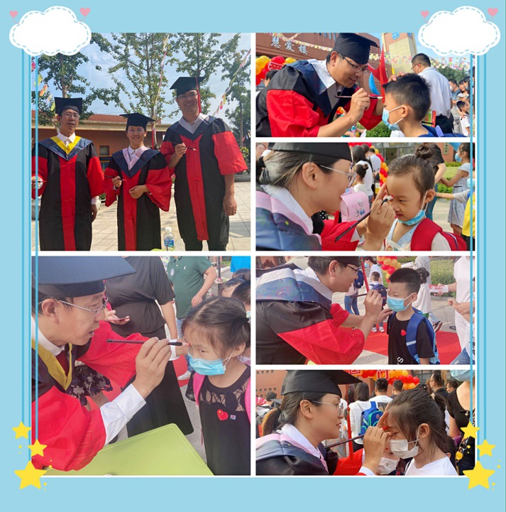 万象城allwincity官网第二教工党支部的老师们走到孩子们面前,在他们的额头正中点上一颗红痣,因为“痣”与“智”谐音,朱砂点痣,取的就是“智”的意思,意为开启智慧,目明心亮,祝愿孩子们从此眼明心智,好读书,读好书,开启新的知识航程,遨游学海,起飞梦想。