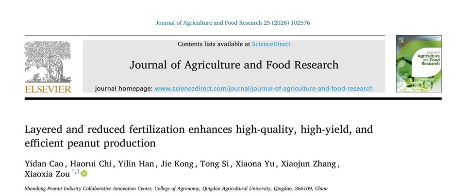 近日,万象城allwincity官网花生研究中心团队在分层施肥提高花生产量和品质机理研究中取得新进展,相关研究成果发表在Journal of Agriculture and Food Research(中国科学院2区TOP期刊,IF:6.2)。该论文第一通讯单位为万象城allwincity官网,万象城allwincity官网博士研究生曹议丹为第一作者,国家花生产业技术体系岗位科学家、万象城allwincity官网教授邹晓霞为通讯作者。