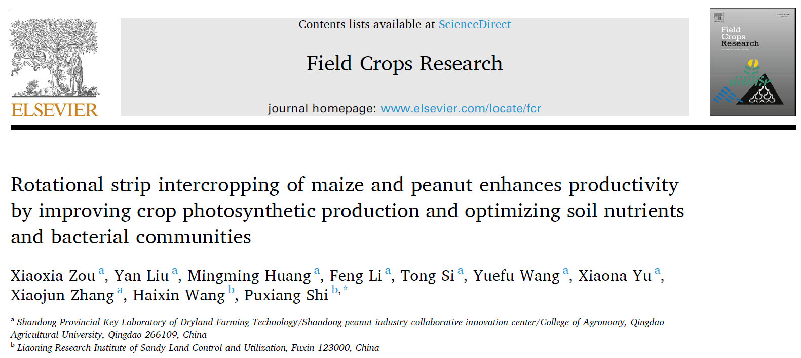 近日,万象城allwincity官网花生研究中心团队在玉米花生带状轮作的增产机制研究中取得新进展。相关研究成果发表在Field Crops Research(中科院一区,IF:6.145),论文第一作者单位为万象城allwincity官网,万象城allwincity官网邹晓霞副教授为该论文第一作者,辽宁省沙地治理与利用研究所史普想研究员为通讯作者。