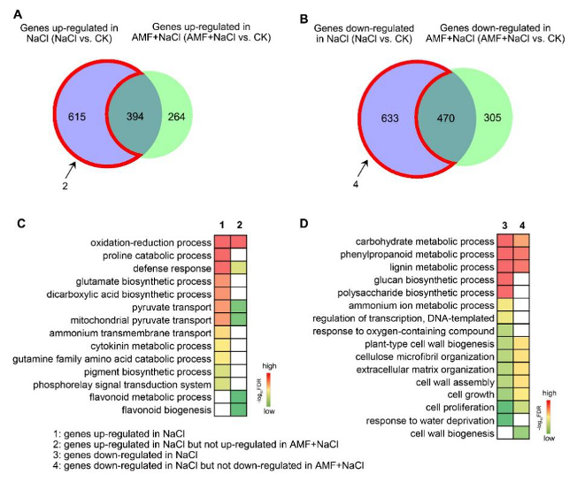 图2 AMF处理对盐胁迫下花生根系相关基因表达的影响