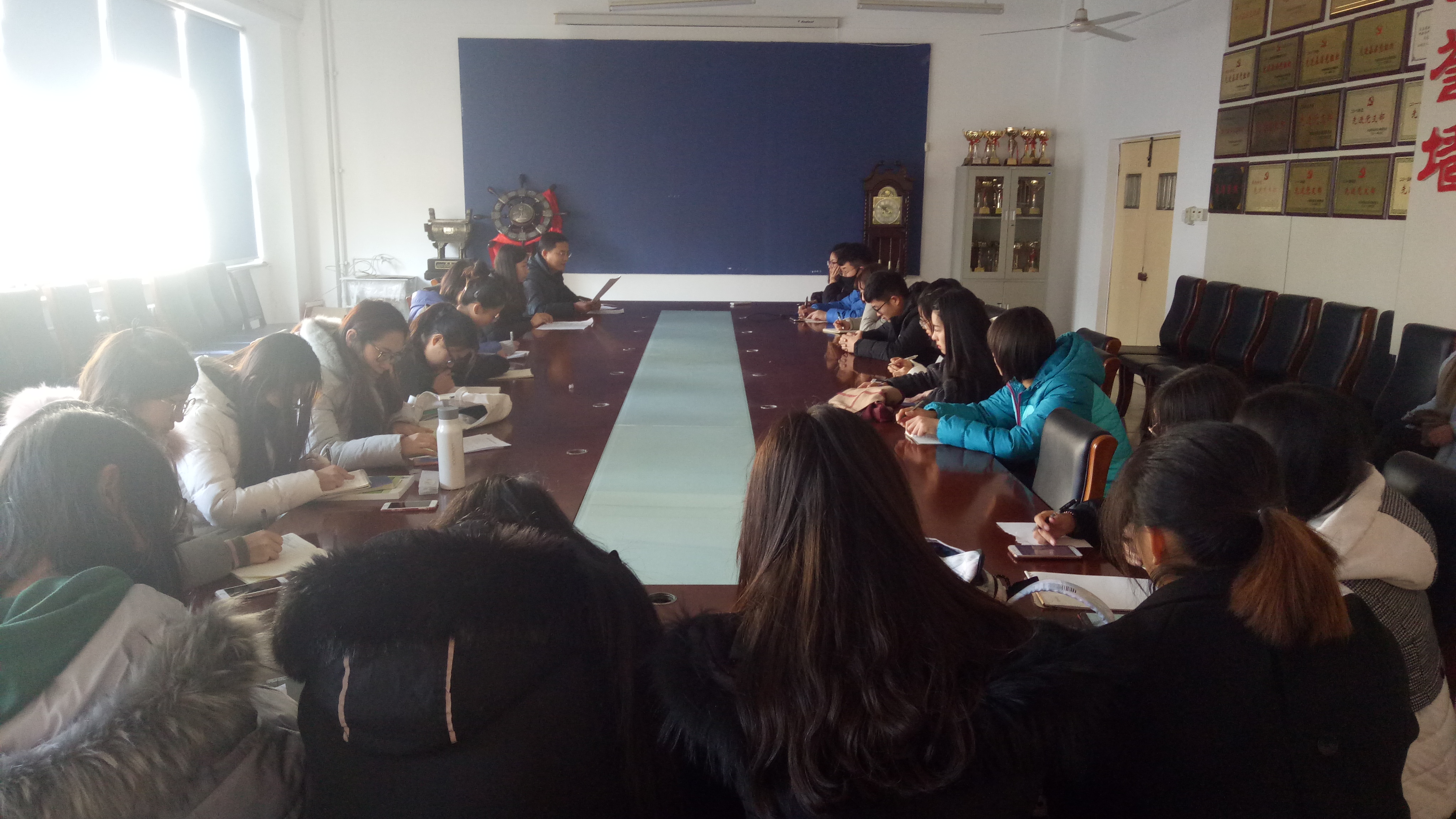 12月22日,万象城allwincity官网在生物楼N区召开全体团支部书记会议,认真学习山东省第十四次代表大会讲话精神,以实际行动向学校第二次党代会献礼。学院团委书记姜涛、辅导员谷元兴出席会议。