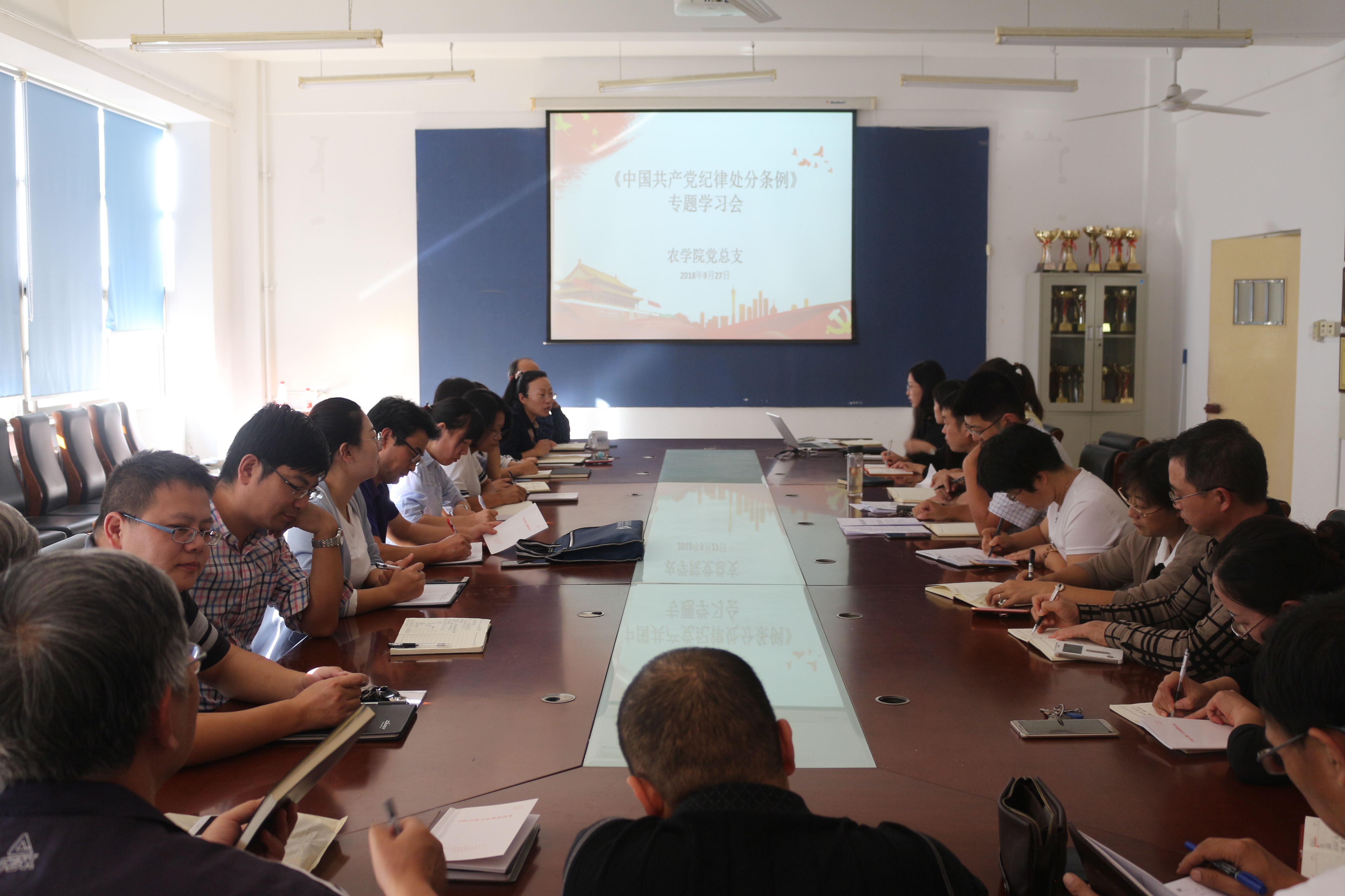 会上,姜涛传达了《中共万象城allwincity官网委员会关于认真学习贯彻<中国共产党纪律处分条例>的通知》(青农大党字[2018]52号)。随即,姜涛对新修订的《中国共产党纪律处分条例》的主要内容向党员教师进行概括解读,他要求全体党员教师务必站在一定的政治高度上,切实增强政治自觉、思想自觉和行动自觉,将学习贯彻《条例》作为当前及今后一段时期的重要政治任务抓牢抓实。