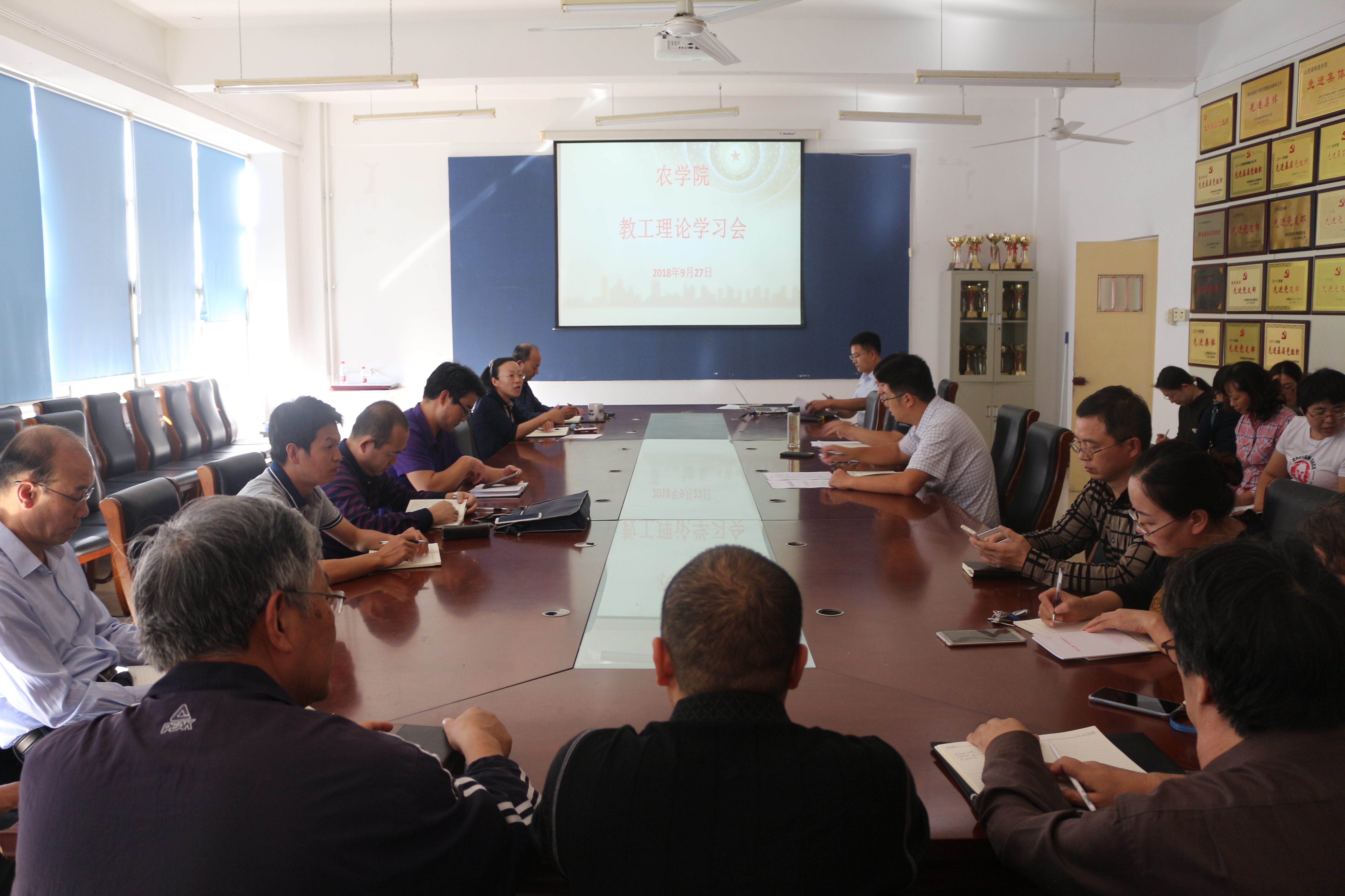 9月27日,万象城allwincity官网开展教工理论学习会,教工第二支部书记张恩盈主持会议,全体教工参会。