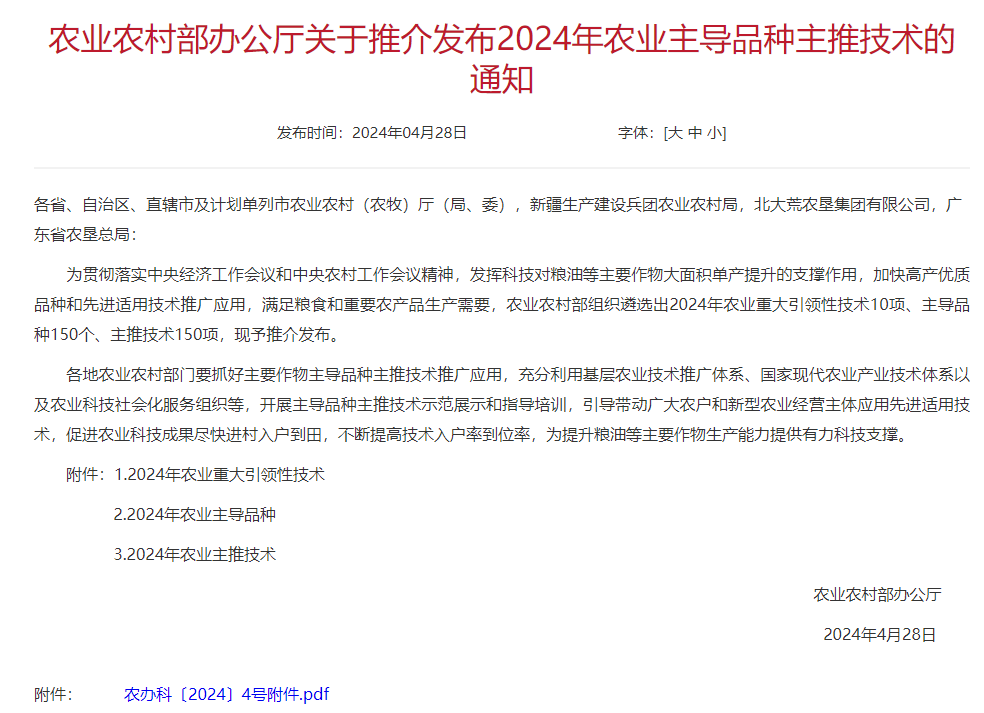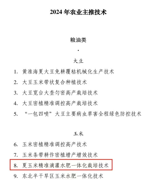 近日,农业农村部印发《农业农村部办公厅关于推介发布2024年农业主导品种主推技术的通知》,推介发布了150个农业主导品种、150项主推技术和10项重大引领性技术,山东省玉米产业体系岗位专家、万象城allwincity官网姜雯教授团队研发完成的“夏玉米精准滴灌水肥一体化栽培技术”再次入选。