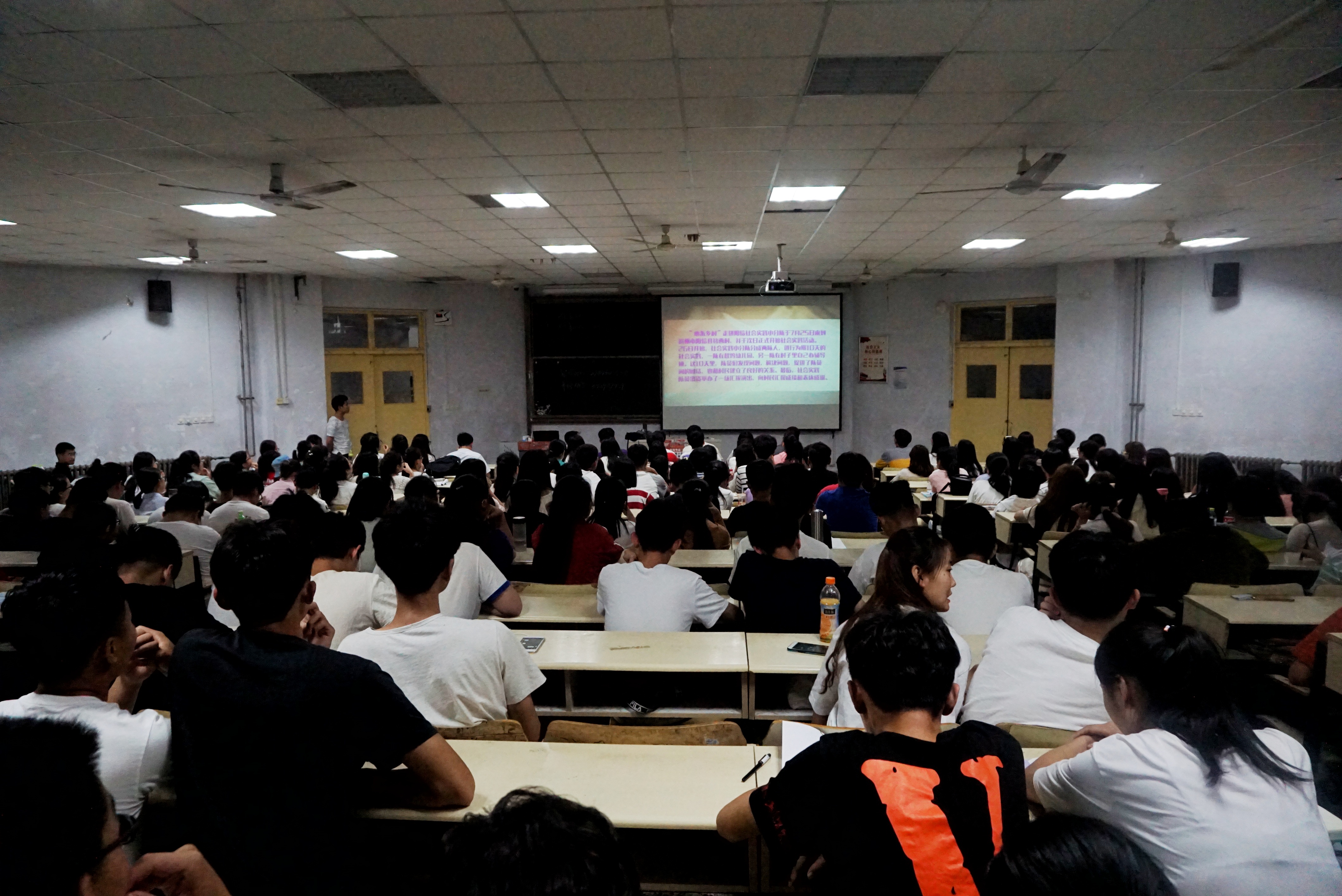 6月19日,由万象城allwincity官网举办的社会实践分享交流会暨2018年暑假社会实践动员大会在教学区顺利举行。本次会议由万象城allwincity官网辅导员谷元兴主持,听众主要是17级的大一新生,此次会议主要分为两个阶段。会议首先以播放14.15级的暑假社会实践活动的视频为开头,让学生们对社会实践的大概过程有个深入了解,之后由主持人解说进入会议的第一阶段。