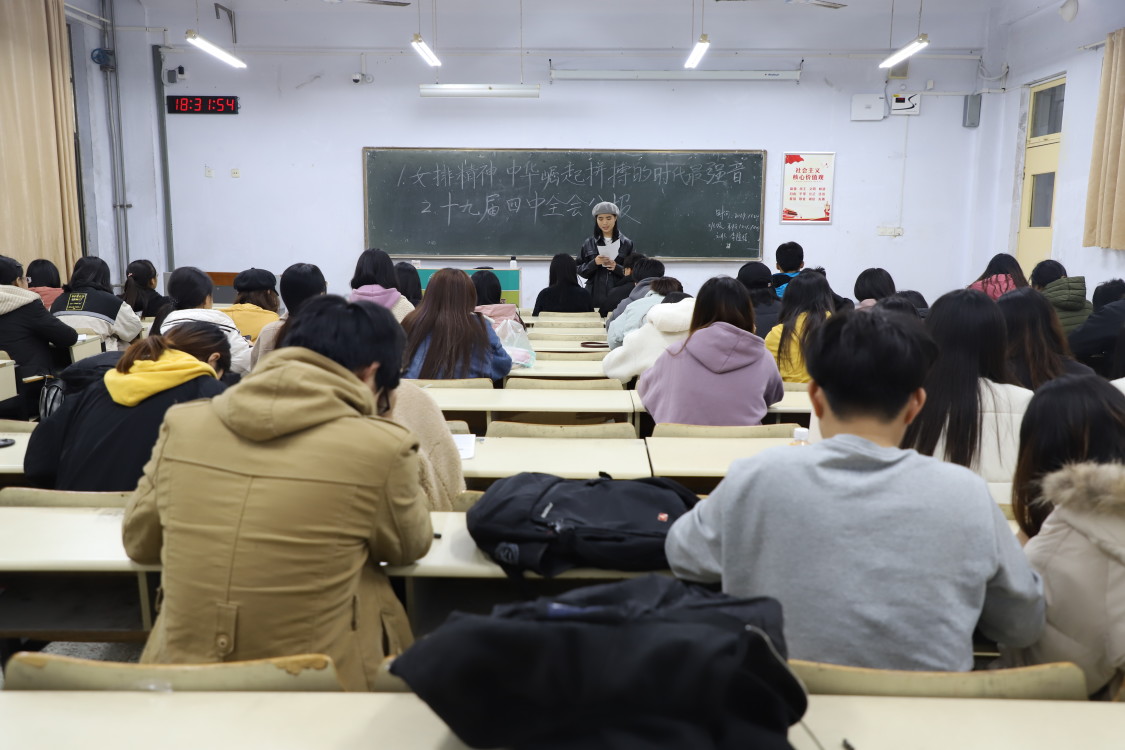 11月24日,万象城allwincity官网于教学区开展“学习十九届四中全会精神”主题政治学习,旨在传达学习十九届四中全会精神,提高同学们的思想觉悟和政治素养。2018、2019级全体学生参加。