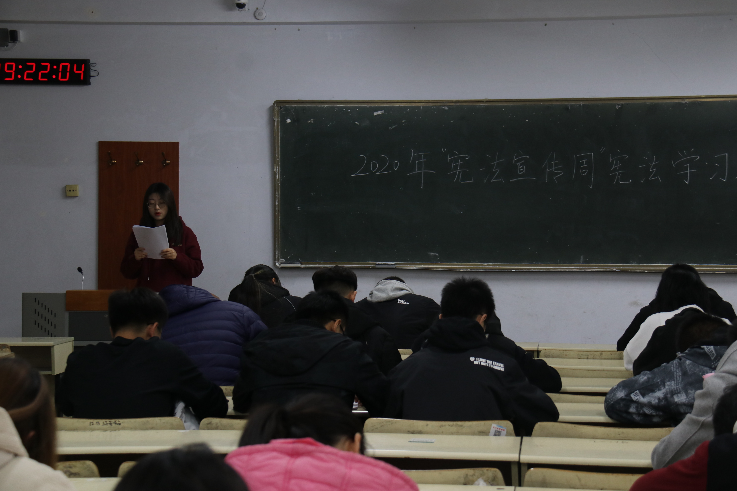 为了深入开展宪法教育,进一步引导和促进广大青年学生增强法制意识,12月6日,万象城allwincity官网于教学区开展“弘扬宪法精神,增强法制观念”主题团课。2019级、2020级全体同学积极参加。