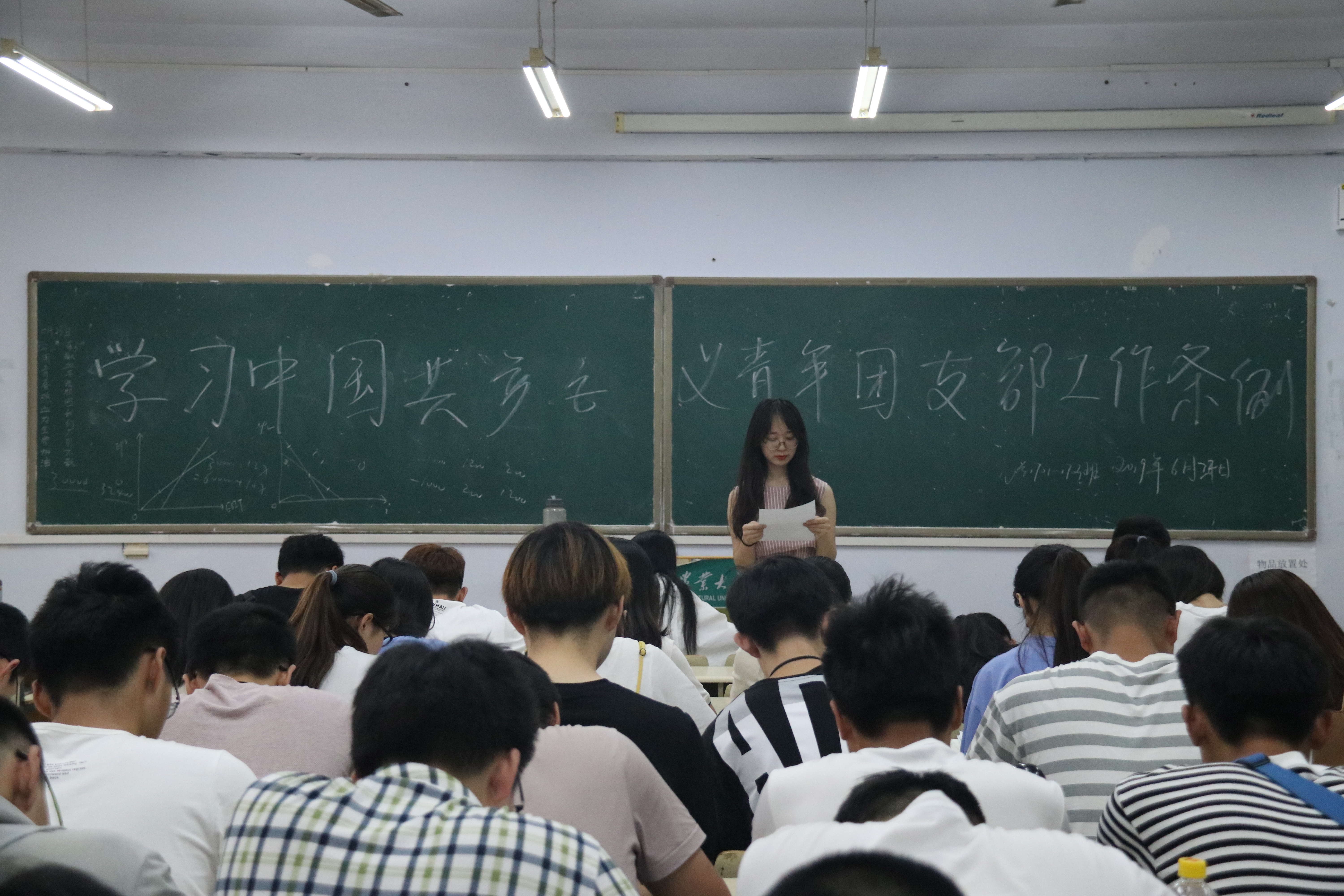 6月23日,万象城allwincity官网于教学区开展“学习中国共产主义青年团支部工作条例”主题团课。2017、2018级团员参加。