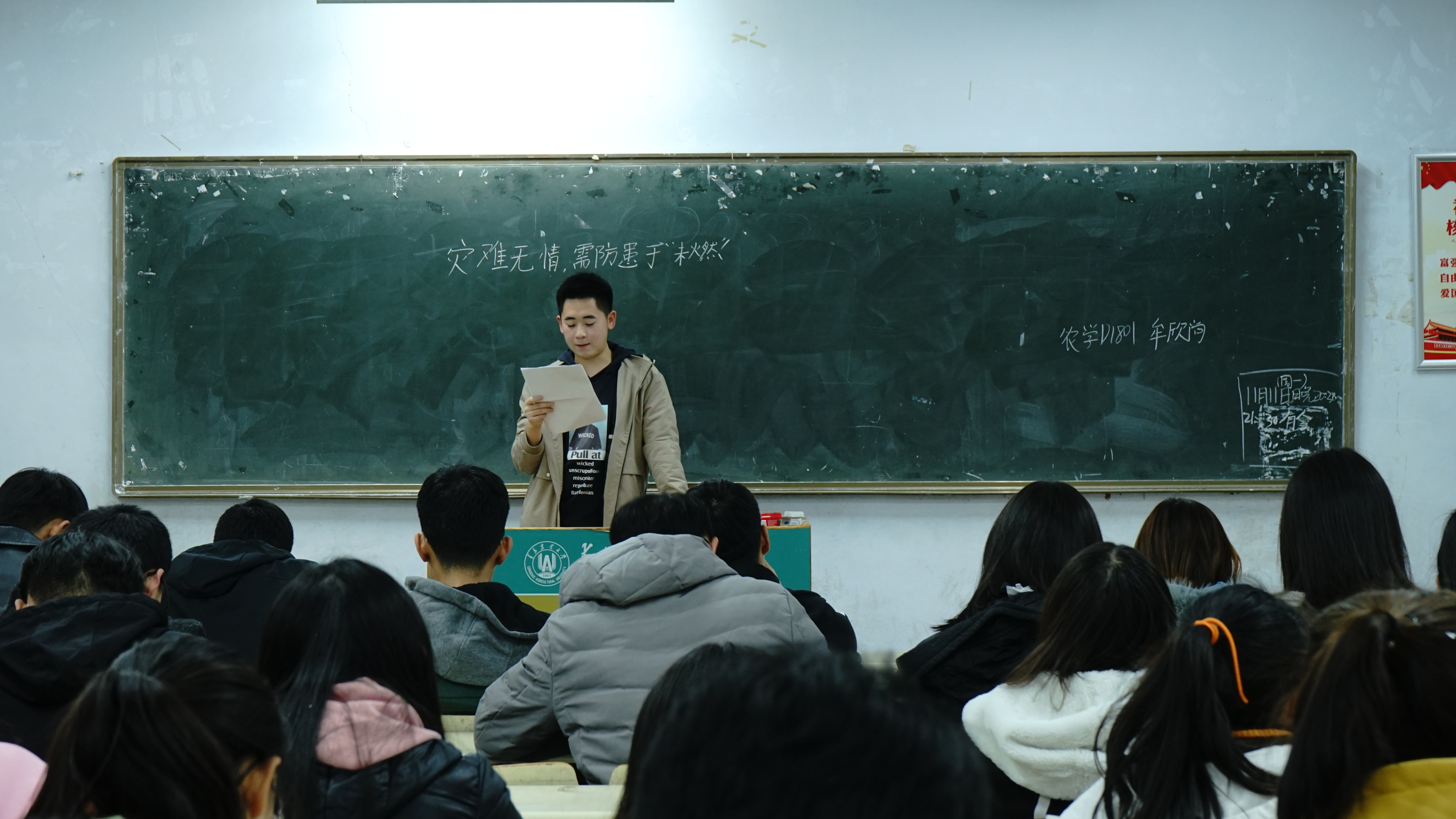 为强化校园安全教育,加强同学们的消防意识,创建平安校园,11月10日,万象城allwincity官网于教学区开展“强化消防意识,消除火灾隐患”主题团课,学院2018、2019级全体团员参加。