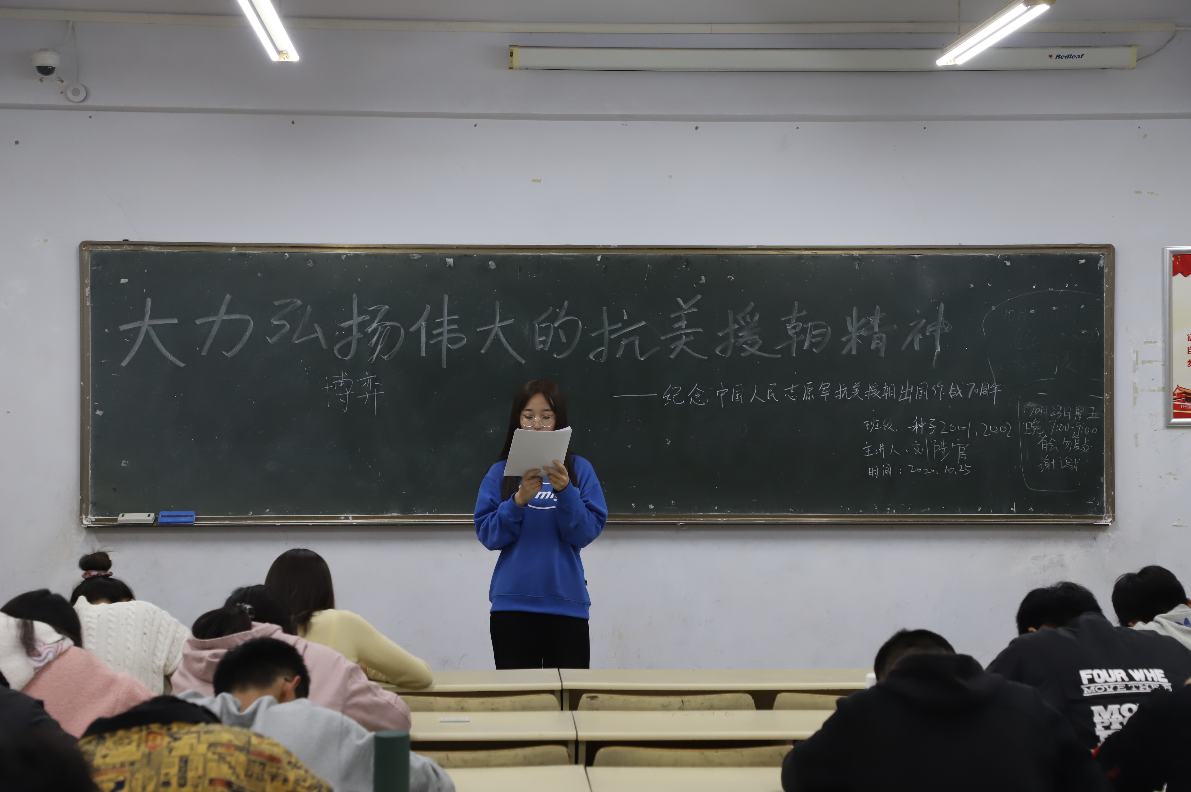 10月25日,万象城allwincity官网于教学区开展“大力弘扬伟大的抗美援朝精神”主题团课,旨在纪念抗美援朝胜利70周年,铭记历史,致敬英雄,弘扬爱国主义精神。2019级、2020级全体学生积极参加。