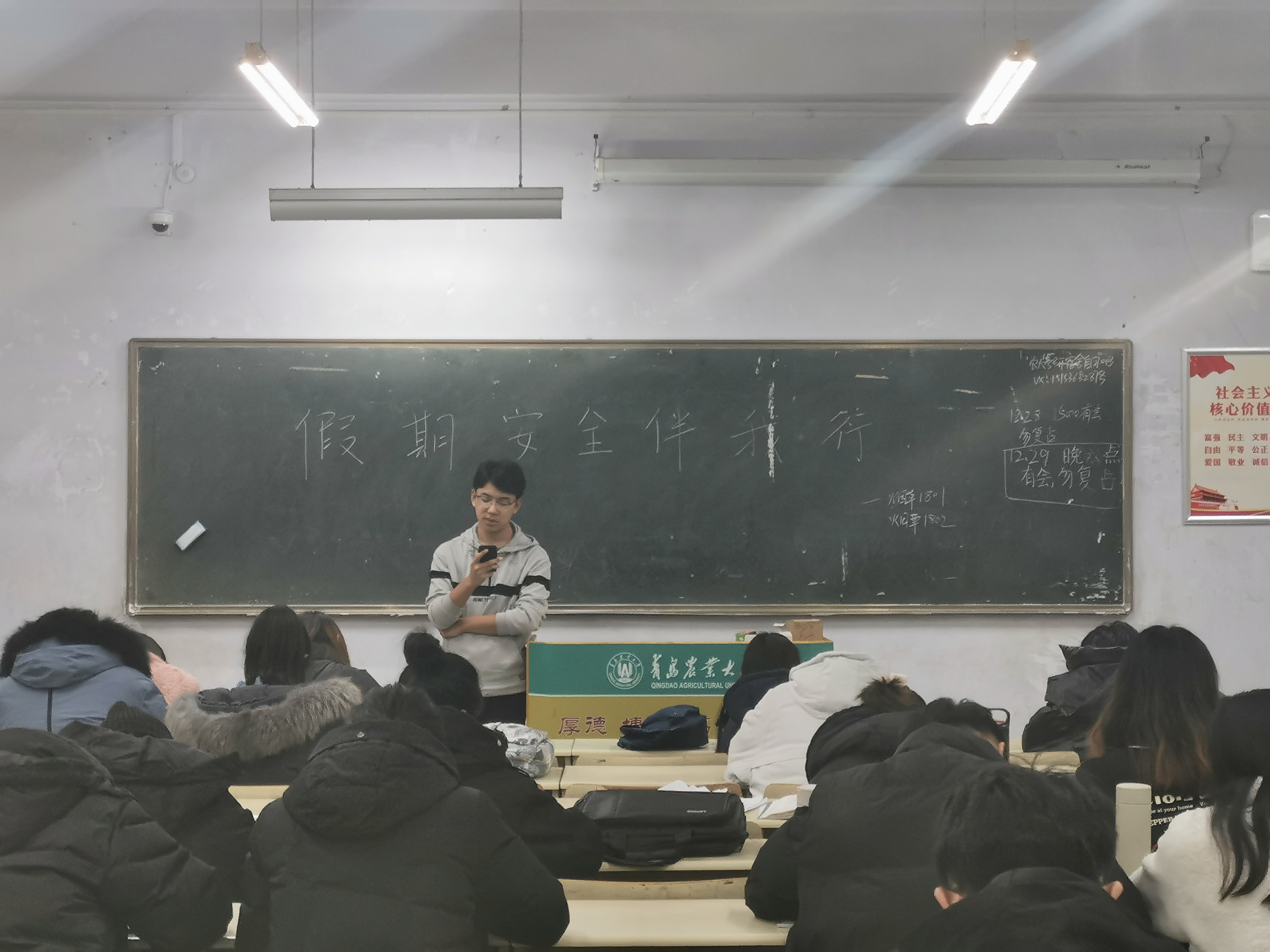 12月29日,万象城allwincity官网于教学区开展学习“假期安全伴我行”主题团课, 2018级、2019级全体学生积极参加。