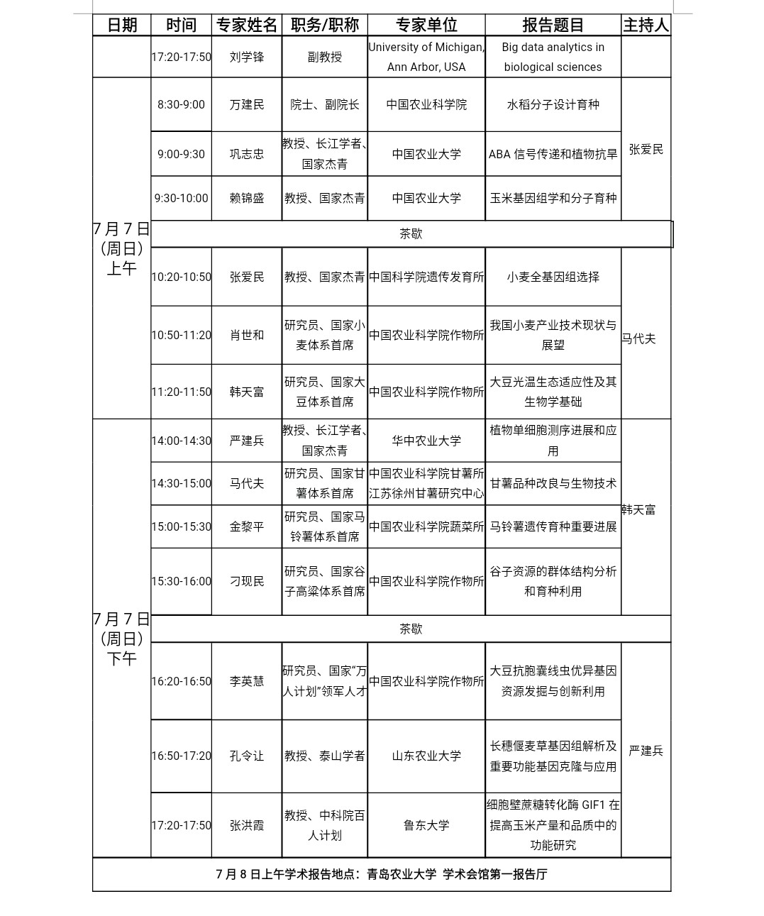 会议的形式以邀请著名专家做学术报告为主,交流主题包括:农业生物学院士报告, 农业生物学前沿论坛, 现代农业产业发展论坛等。