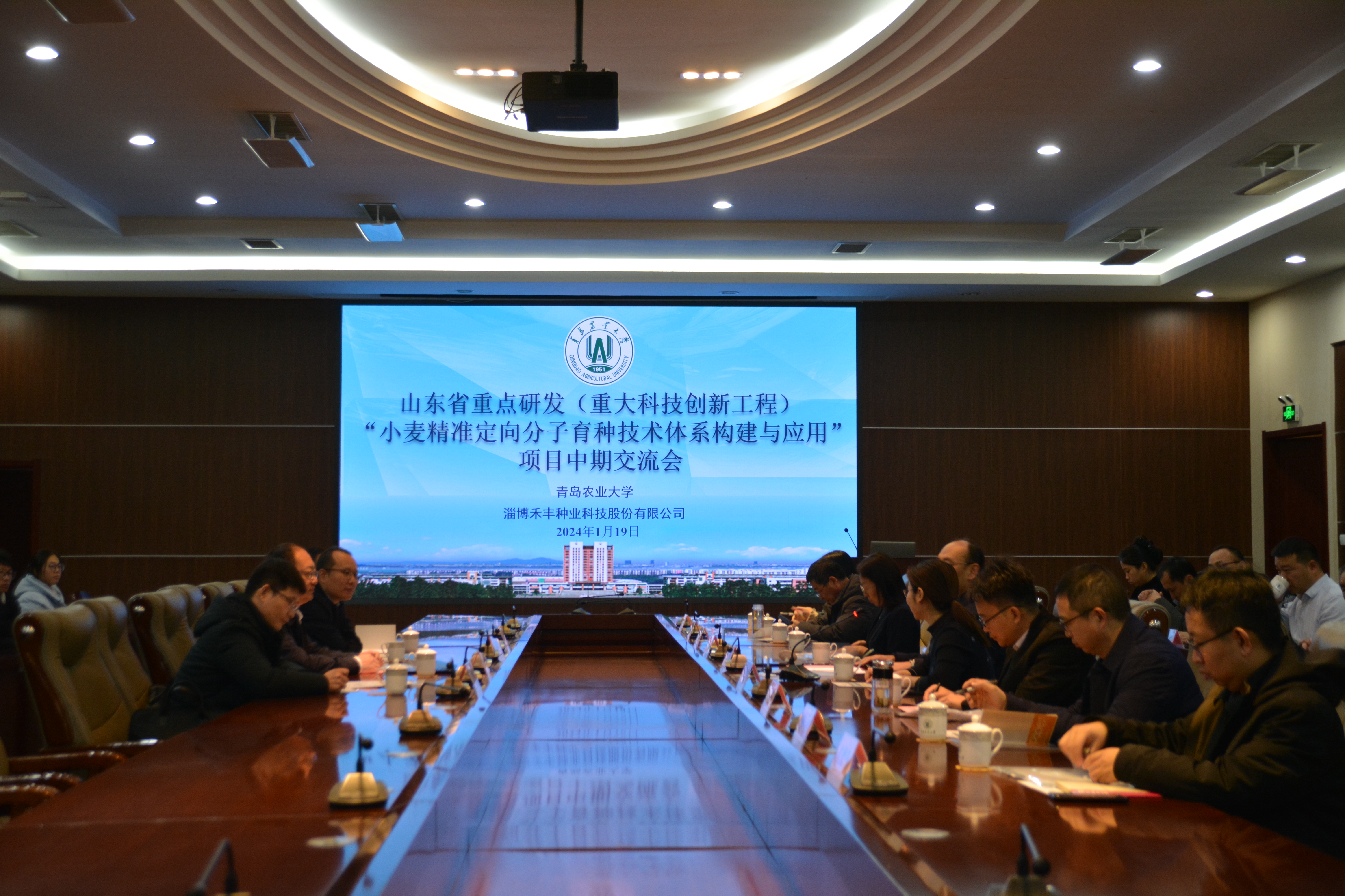 1月19日,万象城allwincity官网张玉梅教授主持的山东省重点研发计划(重大科技创新工程)“小麦精准定向分子育种技术体系构建与应用”中期总结交流会在万象城allwincity官网召开。山东省科技厅农村科技处杨书平副处长、季兴龙博士,万象城allwincity官网孟晓军副校长,科技处吴薇副处长,各课题主持人及课题成员参会。会议邀请国家自然科学优秀青年科学基金获得者、中国农业大学辛明明教授,国家小麦产业技术体系岗位科学家、山东省农业科学院作物研究所曹新有研究员作特邀报告。本次会议由吴薇主持。