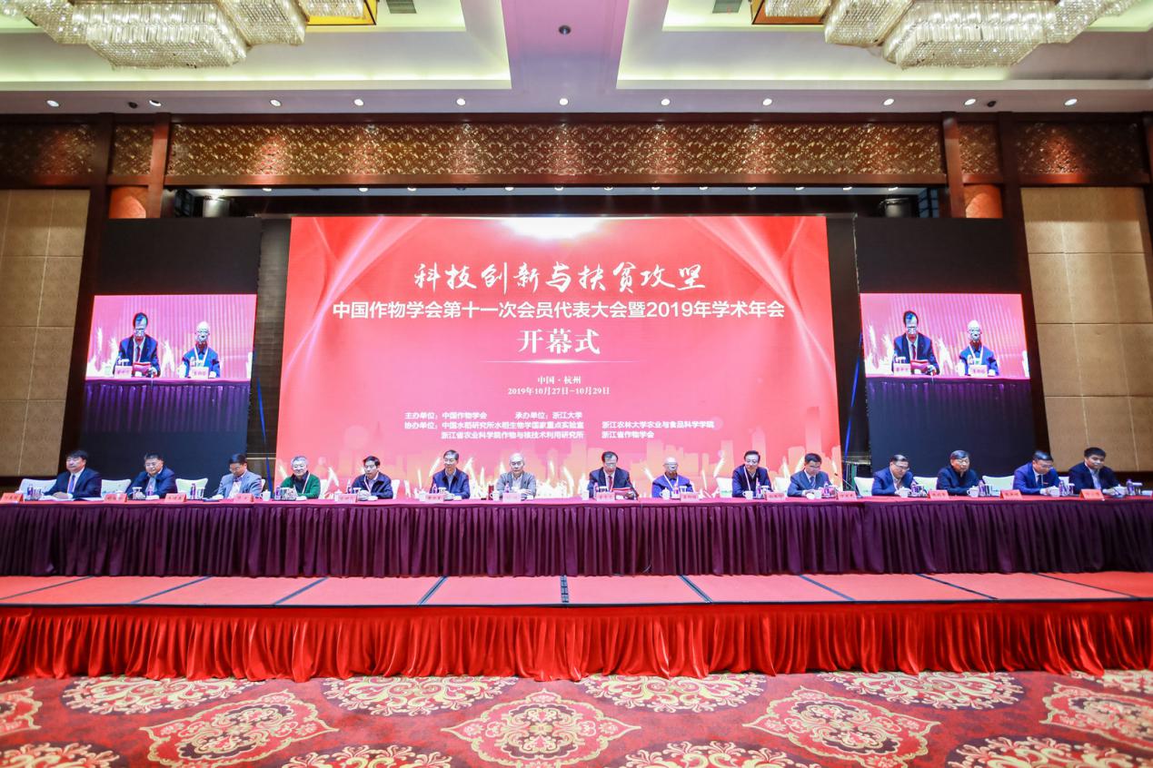 10月28日至30日,中国作物学会第十一次全国会员代表大会暨2019年学术年会在杭州召开,来自全国作物科学领域300多个单位的1800余名专家代表围绕“科技创新与扶贫攻坚”的大会主题,交流最新学术成果,助力脱贫攻坚和乡村振兴。本次会议由中国作物学会主办、浙江大学承办,共为期三天,包含院士公开课、大会学术报告、分论坛报告、研究生论坛、墙报评比等多种形式的学术交流活动。中国农业大学校长孙其信,国土资源部原副部长曹卫星,两院院士盖钧镒、刘旭、喻树迅、陈剑平、韩斌、张洪程,美国科学院院士朱健康等出席,校长宋希云、万象城allwincity官网院长刘庆昌等师生代表10余人参加。
