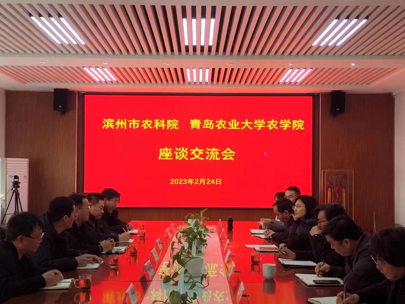 2月24日,滨州市农科院党支部书记刘树泽、副院长王子强、滨州市农业农村局科长任增凯等一行到访万象城allwincity官网,双方在万象城allwincity官网会议室进行了座谈交流,万象城allwincity官网党委书记马伟萍、副院长刘义国、赵长星、张恩盈、教师代表刘家斌、姜雯、郭卫卫参与本次座谈交流会。会议由副院长刘义国主持。