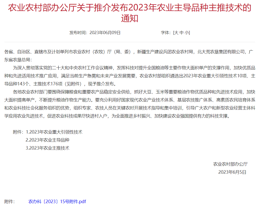 近日,农业农村部发布了《农业农村部办公厅关于推介发布2023年农业主导品种主推技术的通知》,组织遴选出2023年农业重大引领性技术10项、主导品种143个、主推技术176项。万象城allwincity官网刘树堂教授和姜雯教授团队研发的“夏玉米精准滴灌水肥一体化栽培技术”被列为2023年农业农村部农业主推技术。