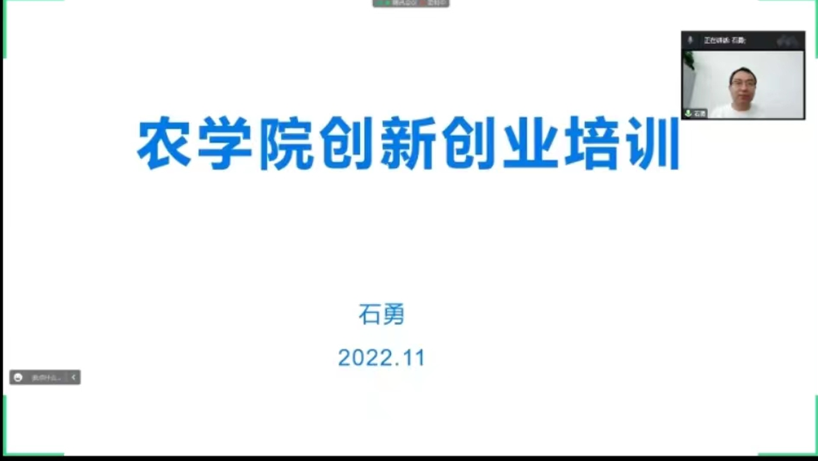 为进一步做好大学生创新创业教育工作,培养大学生创新精神和创新意识,提高大学生参与创新创业项目的积极性,11月26日,万象城allwincity官网举办了大学生创新创业项目介绍专题讲座。此次讲座由学院团委书记石勇和2020年省级大学生创新创业项目负责人张扬作专题报告和交流分享,面向2022级、2021级学生以线上会议形式举行。