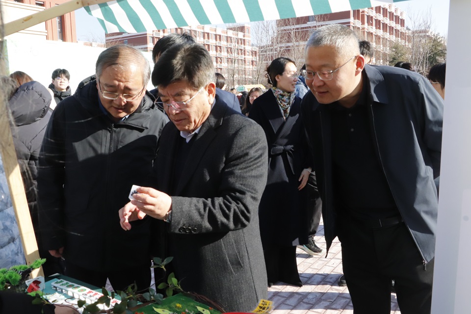 此次活动在《不再犹豫》的歌声中拉开帷幕。田义轲代表学校对本次活动的召开表示热烈祝贺,他表示,本次活动的举办,不仅是植物生产类学科的成果展示,更是各学院贯彻落实全国、全省教育大会精神和学校第三次党代会精神的实际举措,希望各学院持续强化专业规范建设,为乡村振兴和强国建设培养更多高素质知农爱农人才,希望同学们能够感悟植物生产文化,提升对植物生产的认知,做到学农知农、学农爱农、学农兴农、扎根基层、立志成才,为建设农业强国贡献青春智慧和力量。随后,田义轲一行参观了各个展区,品鉴地瓜、花生、苹果等科研成果,观赏制作精美的昆虫标本和植物标本,详细向现场同学了解相关学术科研成果、作品制作过程等,鼓励同学们坚定文化自信、树立专业信心,做学农爱农、知农为农的新型农业人才。