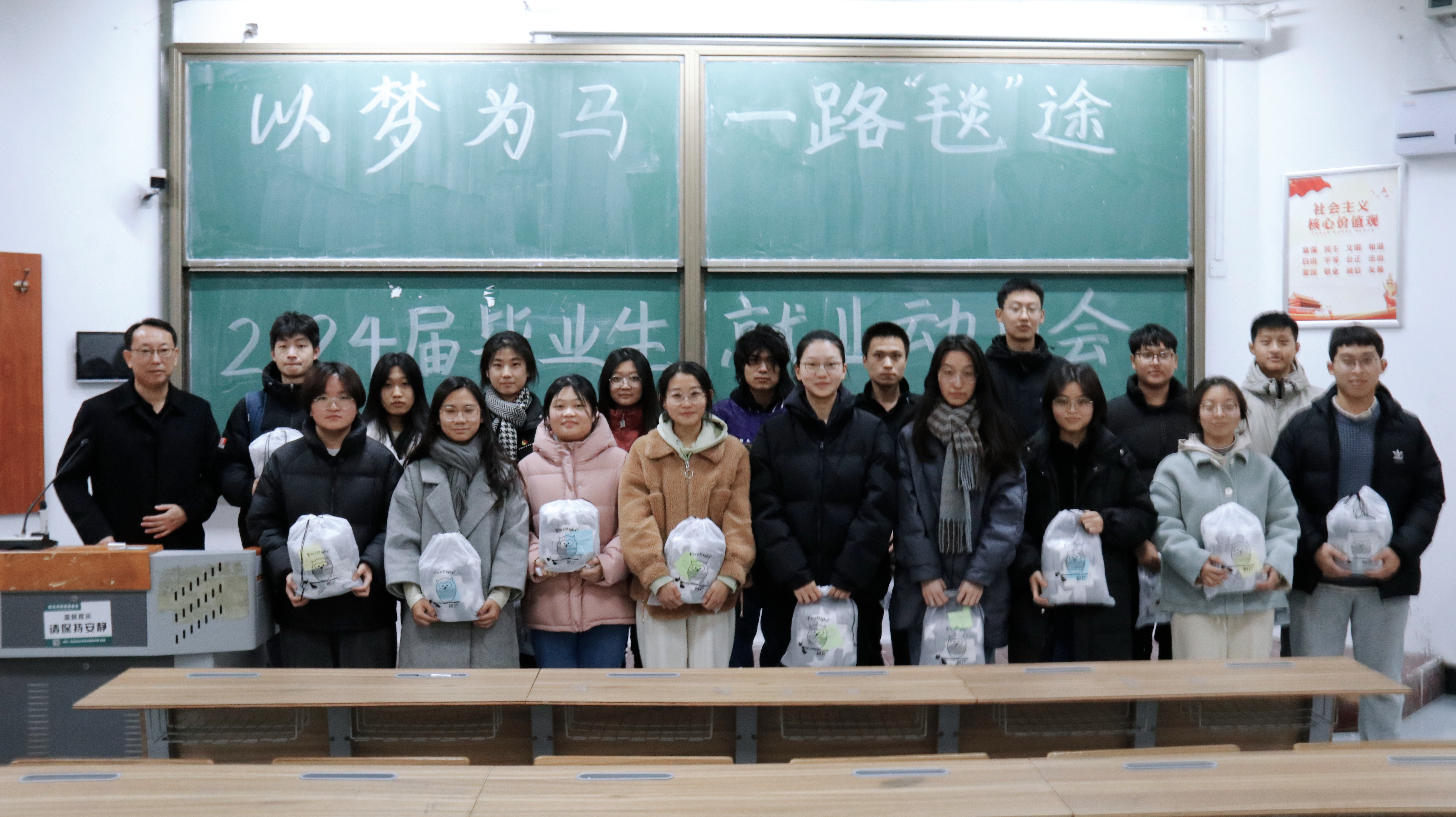 1月29日,万象城allwincity官网于教学楼举办“以梦为马,一路‘毯’途”——2024届毕业生就业动员会。万象城allwincity官网党委副书记孙占伟,团委书记石勇,辅导员刘宁、李宪翔,2020级班主任及学生代表参加。本次活动由石勇主持。