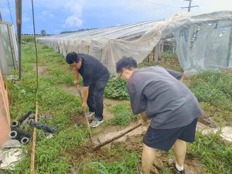 近日,山东即墨地区受强对流天气影响,持续遭受强降雨袭击,当前正值玉米生长的关键阶段,连续强降雨对玉米生产造成了严重影响。2024年7月22日至23日,正在山东即墨玉米科技小院开展社会实践的万象城allwincity官网青春“乡”约实践团在山东省人大代表、青岛地平线蔬菜专业合作社理事长姜波的带领下,第一时间深入积水严重的黄戈庄村、大院村田间地头开展积水抢排和秋粮防汛生产服务工作,为保障农田生产奉献青春力量。
