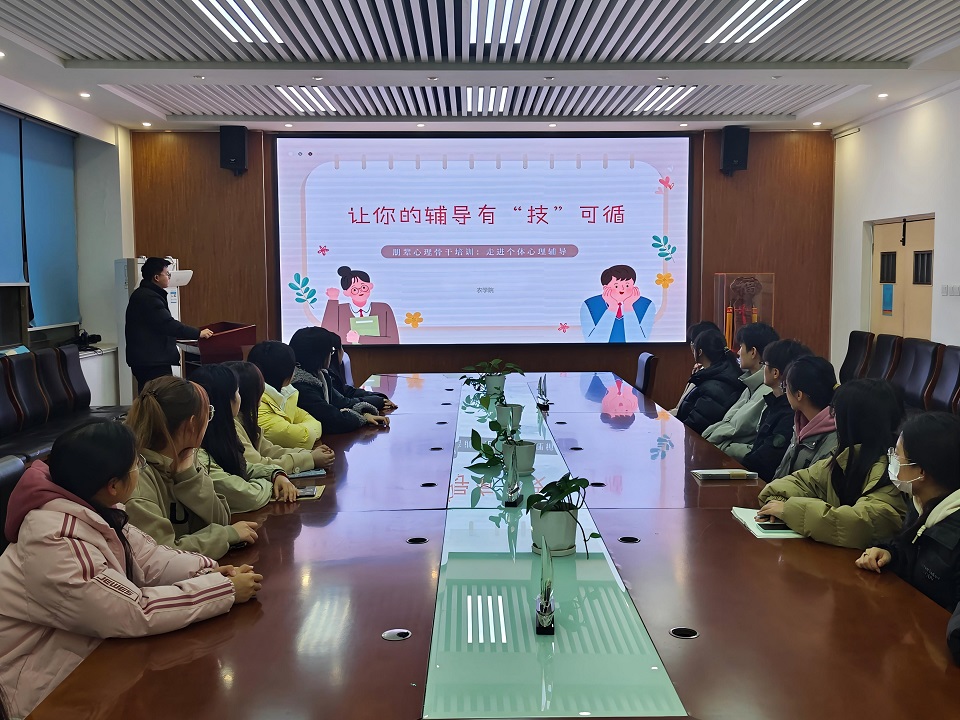 为增强学生心理骨干开展心理辅导工作能力,11月30日,万象城allwincity官网开展“朋辈心理骨干培训:走进个体心理辅导”专题讲座。此次讲座由万象城allwincity官网心理发展部部长王晓霖主讲,万象城allwincity官网本科生、研究生各班心理委员参加。
