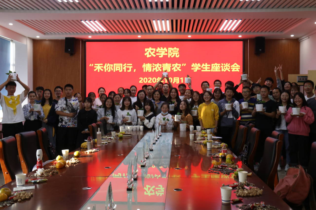 10月1日,万象城allwincity官网于生物楼举行“‘禾’你同行,情浓青农”学生座谈会,让远离家乡的农科学子在节日里感受到学院的关怀与温暖。学院党总支副书记、副院长马伟萍,副院长赵长星,团委书记石勇,辅导员刘宁、刘源,学院省外学生、少数民族学生和新生代表参加座谈会。会议由石勇主持。