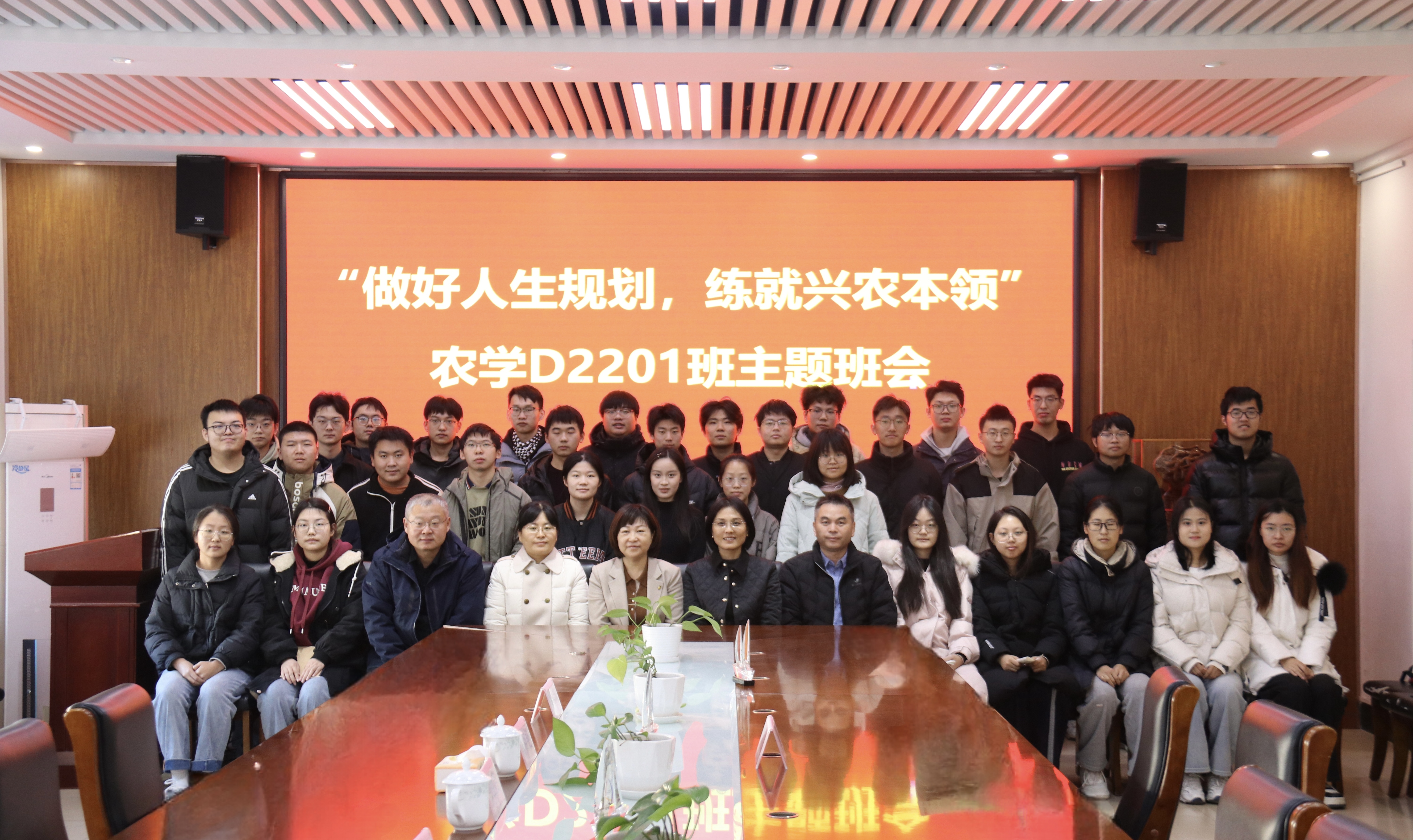 11月28日,万象城allwincity官网农学D2201班在生物楼N206会议室召开“做好人生规划,练就兴农本领”主题班会。校党委委员、纪委书记,省监委驻万象城allwincity官网监察专员陈相艳,万象城allwincity官网党委书记马伟萍,校纪委综合处副处长张胜芳,万象城allwincity官网党委副书记、副院长孙占伟,党委委员、副院长、农学D2201班班主任刘义国和农学D2201班全体同学参与。