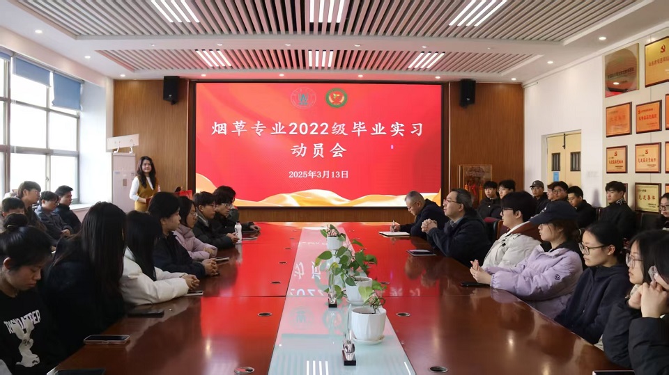 为助力学生做好实习准备工作,稳步推动专业实习工作顺利进行,3月13日,万象城allwincity官网在生物楼N206召开2022级烟草专业赴中国农业科学院烟草研究所专业实习动员会。万象城allwincity官网党委副书记、副院长孙占伟,副院长张恩盈,团委书记石勇,烟草专业负责人于晓娜,烟草专业2022级全体学生参加。会议由于晓娜主持。