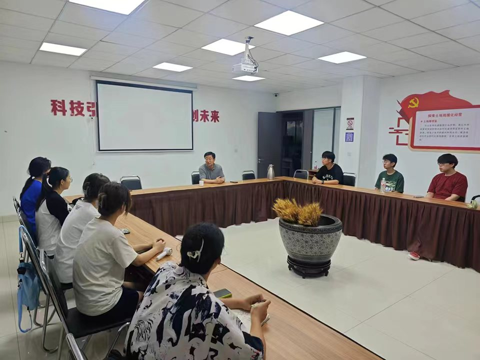 7月19日上午,实践服务团在诸城市佳博天益农业服务有限公司召开座谈会,实践服务团全体成员、公司总经理马煜萍参加座谈会。座谈会上,总经理马煜萍为成员们介绍了公司基本概况并展开深度交流。马煜萍指出,农业从业者应该不忘初心,始终将农民利益放在首位,加大人才引进力度,顺应时代发展趋势,切实推进乡村振兴战略的实施。团队成员深受鼓舞,纷纷表示要学好专业知识,投身农业领域,助力智慧农业发展。会议结束后,实践服务团进行了实地参观学习。工作人员详细介绍了智慧农业在玉米、小麦大田托管模式中的应用,此模式通过集中土地、采用智慧农业云平台监测数据,实现降低种植成本、增加粮食产量,为建设高标准农田提供了保障。随后,实践服务团参观了种子加工一体化设备,通过种子烘干、储藏、选种、拌种自动化等一系列过程,延长了种子储存期,提高了粮食产量。最后,实践服务团成员又了解了新型农机器具在智慧农业中的应用,新型农机更加注重智能化和自动化,以提高生产效率为目标,减轻劳动强度为原则,为粮食安全和乡村振兴提供了有力支撑。