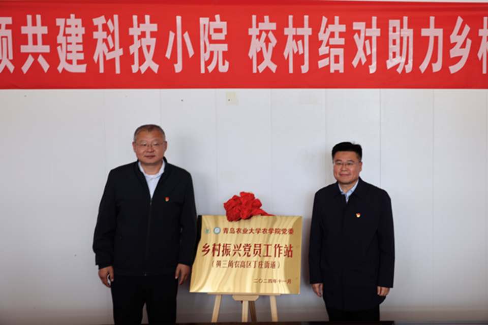 与会人员实地考察了青农大黄三角现代农业研究院、黄三角农高区智慧农机创制园、坡庄村科技小院及村党支部领办的番茄种植基地,万象城allwincity官网第五党支部与坡庄村党支部签订结对共建协议,万象城allwincity官网和黄三角农高区组织人事部有关负责同志共同为“乡村振兴党员工作站”进行揭牌。